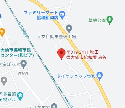協和インターチェンジから7km 約10分 国道341号線 → 国道13号線経由 秋田南インターチェンジから15km 約20分 国道13号線経由